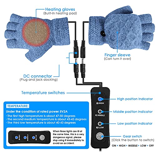 Guanti Riscaldati USB Guanti Riscaldanti Elettrici Pieni E Guanti Mezze Dita 3 Impostazioni di Temperatura per Uomo Donna Mani Invernali più Calde