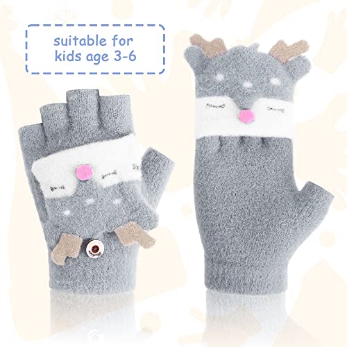 Guanti Senza Dita Bambino - Guanti Mezze Dita Caldi di Guanti Invernali Convertibili Flip Top Senza Dita Modello di Natale per Bambini,Per ragazzi e ragazze dai 3 ai 6 anni (Gray)