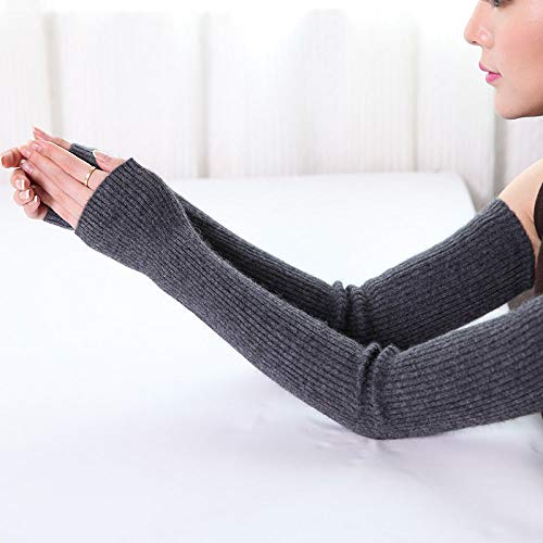 Guanti Senza Dita Da Donne,Scaldamuscoli Senza Dita In Cashmere Manica A Braccio Tinta Unita Polsino A Manica Corta Guanti Lavorati A Maglia Di Lana Per Donna Inverno Tenere Al Caldo 40 Cm,Grigio Scu