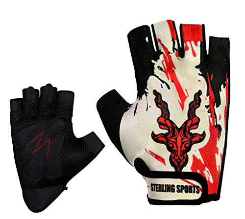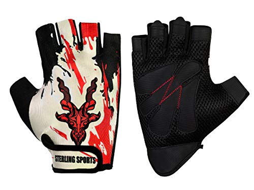 Guanti per sollevamento pesi, palestra, allenamento, fitness, bodybuilding, ciclismo, ciclismo, ciclismo, mountain bike, mountain bike, BMX, moto, guida, jogging, escursionismo (bianco rosso, medio)
