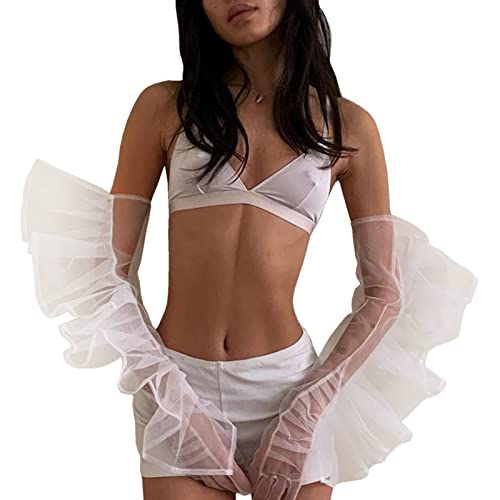 Guanti in tulle, alla moda, con maniche senza dita, per costume, bianco, M
