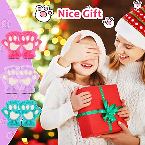 Guanti a Zampa di Gatto 3 Paia Guanti Kawaii Cosplay di Zampe Guanti in Peluche per Gatti in Pelliccia Sintetica Guanti Senza Dita con Zampe di Leone per Ragazze Donne (Rosa, Viola, Blu Pavone)