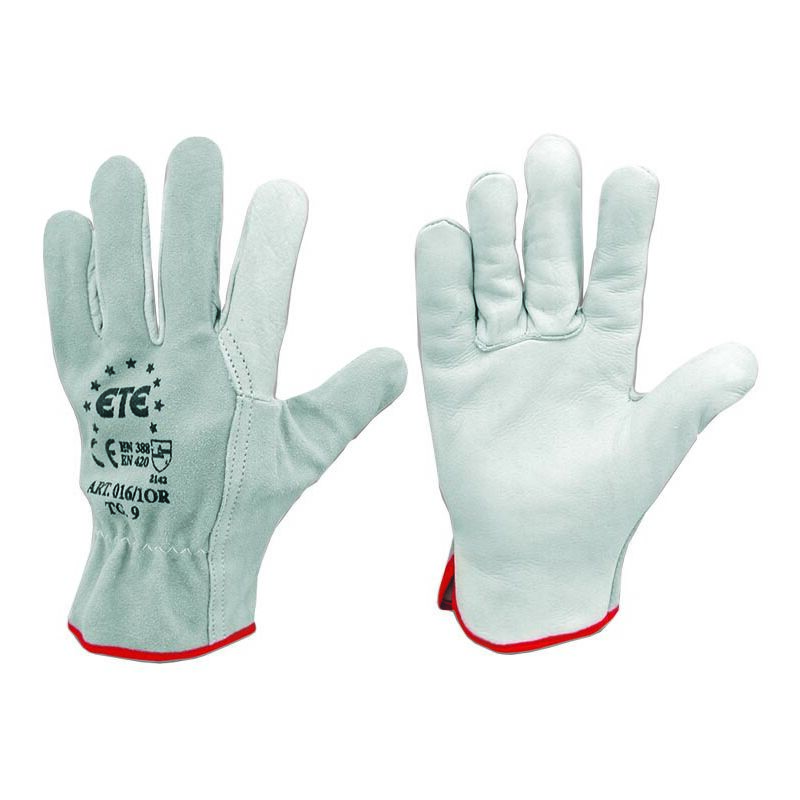 Guanti in fiore di vitello bianco orlati, con dorso in crosta. Taglia 9. Ideali per edilizia e magazzino. Conformi alla normativa D.P.I. Categoria 2 EN 388/2003