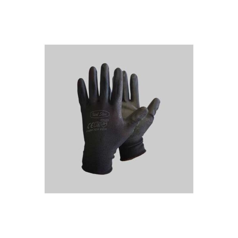 In filo continuo 100% poliestere, palmo ricoperto in poliuretano, dorso aerato, polsino elasticizzato. Indicato nel settore agricolo, carico e scarico, conduzione di automezzi, nel settore meccanico, metalmeccanico, edilizia, industria in genere, lavorazione lamierati. Colore nero. Guanto poliestere/poliuretano nero ideal star tg. 8 IDEAL STAR Guanti da lavoro