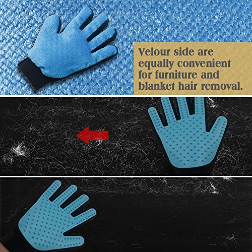 Guanto Spazzola Cane Rabbitgoo 1 Pezzo con Due Lati Guanto per Cani Gatti da Massaggio e Pulizia + Retro Guanto in Velluto per Rimozione dei Capelli per Mobili Tappeti