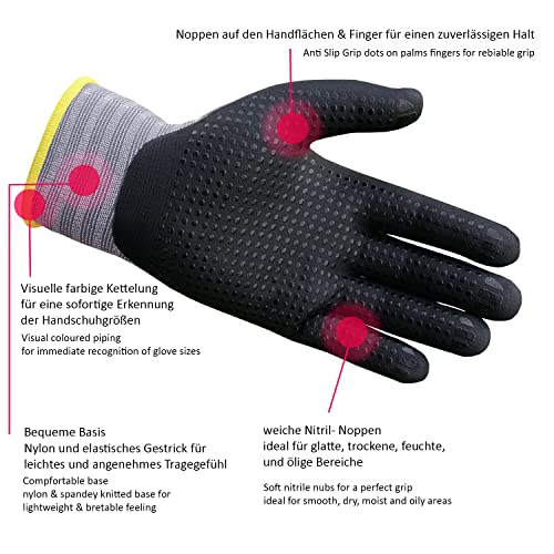 GUARD 5 - 3 paia di guanti da lavoro rivestiti (misura 7/S), con gommini sottili per una migliore presa