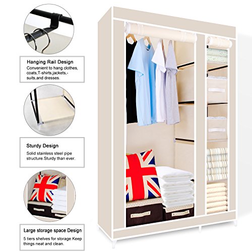 Guardaroba in tela, a 2 scomparti, con asta appendiabiti e ripiani, ideale per la camera da letto Beige