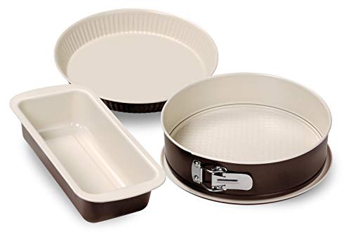 Guardini Scatola Regalo-Chocoforme: Tortiera apribile 26cm+Crostata 28cm+Plumcake 25, Acciaio con rivestimento antiaderente, Colore beige-cioccolato