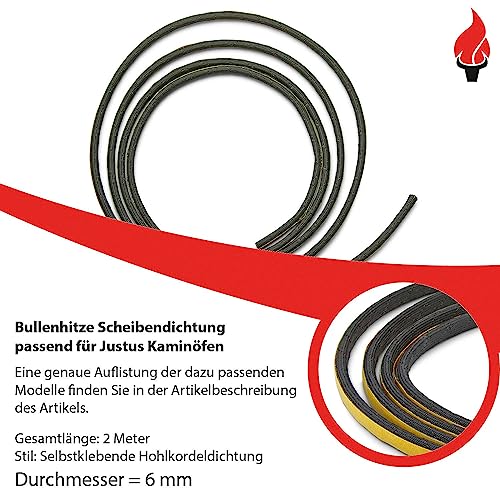 Guarnizione per camino autoadesiva, 2 m, ø 6 mm, con cordicella cava. Adatto per diversi modelli di camini Justus.
