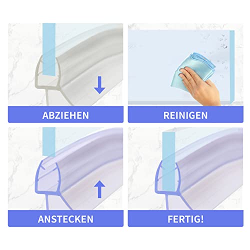 Lavorazione di alta qualità: la nostra guarnizione per doccia è realizzata in materiale di alta qualità. L'area di serraggio è realizzata in PVC rigido trasparente e il labbro in morbido PVC. Si distingue per la sua resistenza ai raggi UV e alla muffa, il che garantisce una lunga durata della guarnizione per doccia