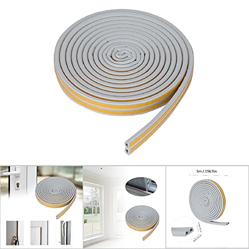 Guarnizione in Gomma per Porte, 9mm x 5M Finestre Autoadesive per Porte e Finestre, Isolamento Acustico Guarnizione in Gomma per Porte e Finestre(Grigio)