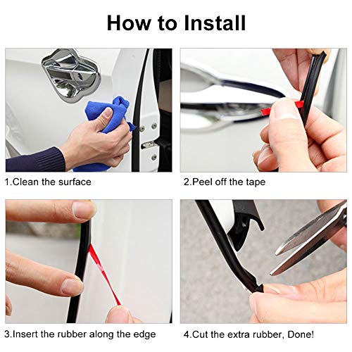 [Adatto al Design Originale Dell'auto]: Le nostre guarnizione porta auto si adattano al design originale dell'auto e utilizzano il design della scanalatura a forma di U per aiutare a prevenire detriti, percussioni, graffi, vernice sul bordo della porta e non influenzano l'apertura e chiusura della porta