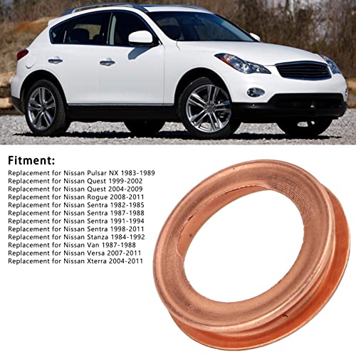 【Accessori applicabili】 Guarnizione del tappo di scarico dell'olio in rame, la guarnizione del tappo di scarico dell'olio è realizzata in base agli accessori del modello specifico e può essere molto adatta per EX35 FX35 FX45 FX50 G20 G25 G35 G37 I35 M35 M37 M45 M56 Q45 QX4 QX56 e altri modelli, si prega di confermare il modello prima dell'acquisto, in modo da offrirti una buona esperienza applicabile.