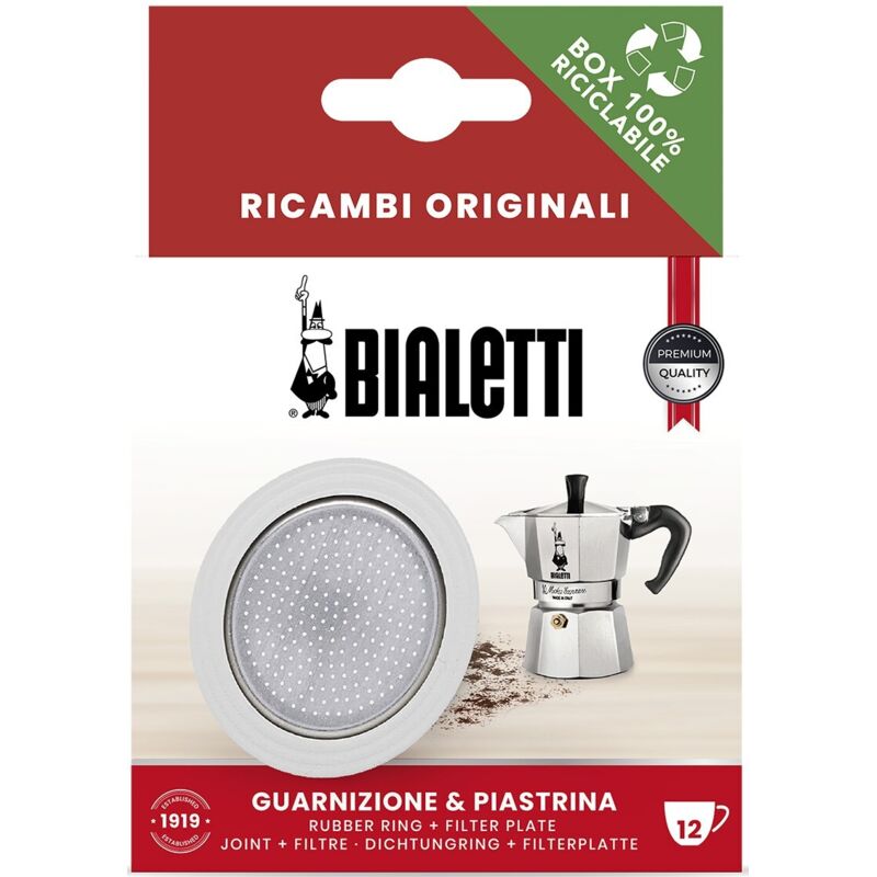 Dettagli Tecnici LineaMoka express e Dama TipologiaConfezione 3 guarnizioni e filtro MaterialeGomma Alluminio Numero di Tazze12