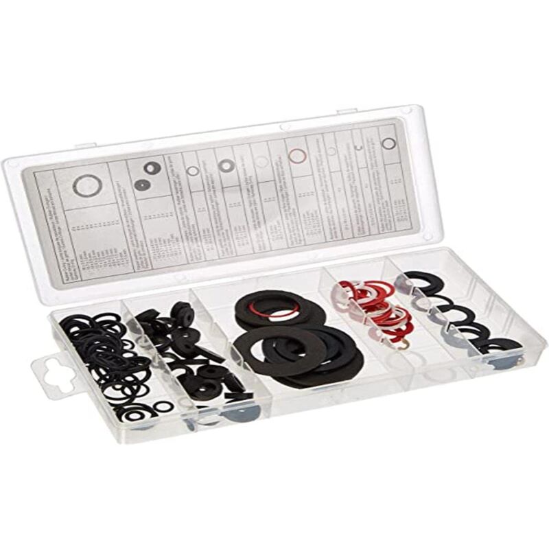 Progettato per richiusura un rubinetto dispersioni rubinetto o in bagno, cucina, bagno, e molto altro ancora Set include alluminio, fibra e rondelle in gomma, guarnizioni in schiuma, Nylon e gomma O-ring Viene fornito con 4 fermi C-Clip Rondella In ottone organizzata in una comoda custodia richiudibile in PVC Facile da riporre.