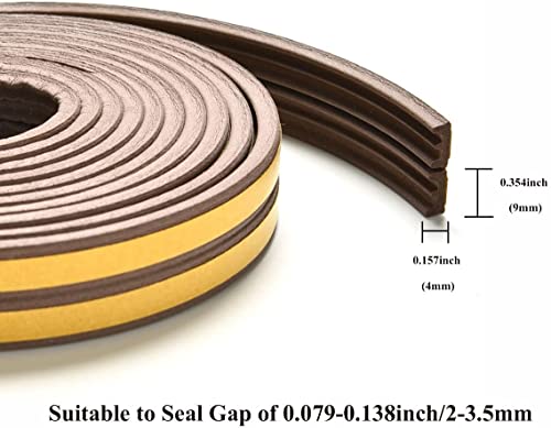 6M / 19.7ft Guarnizioni di tenuta della Porta Finestra Anti-collisione Spogliatura del Tempo Autoadesivo per Antivento Insonorizzato Anti-zanzara, E-Genere Marrone