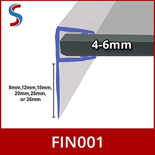 Guarnizioni verticali per doccia, vendute in coppia, usate su schermi o porte, 8, 15, 20, 25 o 35 mm, alette posteriori per vetro da 4 - 6 mm, lunghezza 2 m, FIN001 (alette da 35 mm (trasparente))
