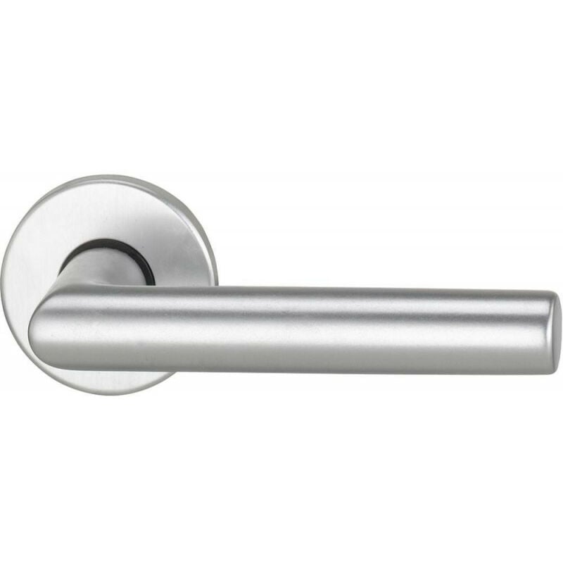 Maniglia a leva per porta di casa mezzo set Riva 2108/5200. acciaio inox - In acciaio inox. opaco - Cuscinetto fisso - Collegamento a perno. avvitato a scomparsa. con camme di supporto - Coperchio senza rosetta per chiave. con rosetta per maniglia a leva - Sottostruttura in acciaio. rotonda. Diametro 55 mm - L'impugnatura può essere utilizzata in direzione destra/sinistra. Fissaggio maniglia a perno pieno - Per porte esterne. Materiale legno. Acciaio