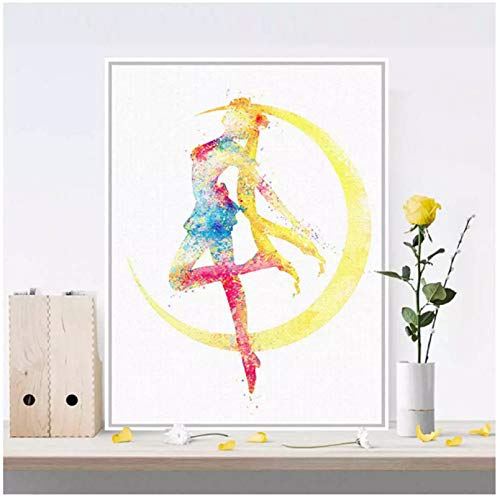 GUDOJK Quadro Art Deco su Tela Acquerello Stile Nordico Sailor Moon Poster Stampa Decorazione della Stanza dei Bambini Nursery Kids Room Cartoon Art Decor Pittura su tela-40x60cm