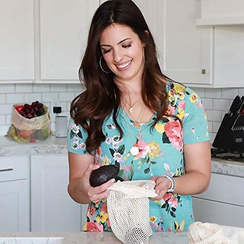 Set di 6 sacchetti di verdure e frutta in cotone. 3 size mesh bag-2 piccolo, 2 medio e & 2 grande.