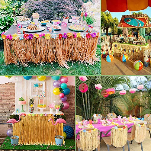Gudotra Gonna Tavolo Hawaiana Tovaglia da Tavolo à Erba con Fiori Decorazioni per Festa di Compleanno a Tema Barbecue Tropicale Giardino Spiaggia