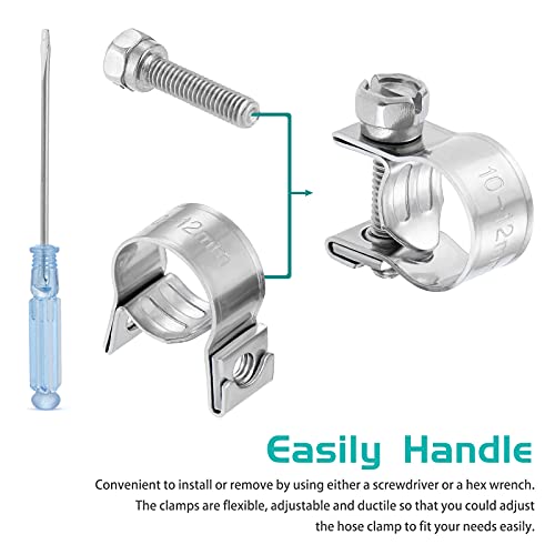 【Misure regolabili da 10 a 12 mm】Assortimento di fascette per tubi in acciaio inossidabile è flessibile e duttile con un'ampia gamma di dimensioni regolabili da 10 a 12 mm.