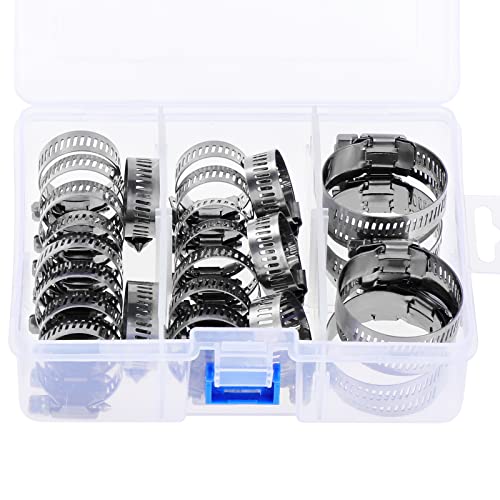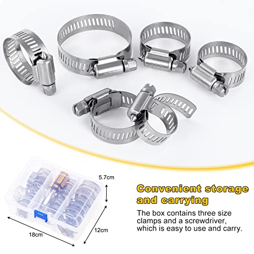 Gueenky 28 Pezzi Fascetta Stringitubo Regolabile, 14-44 mm Fascette in Acciaio Inox per Tubi Fascette Metalliche Stringitubo Inox Per Tubi, Morsetto per Tubi con Cacciavite