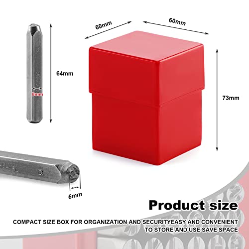 【Dimensioni Punzoni Metallo Numeri】Alfabeto, numero e simbolo hanno un diametro di circa 6 mm, punzoni lettere per metallo sono larghi 8 mm e lunghi 64 mm.