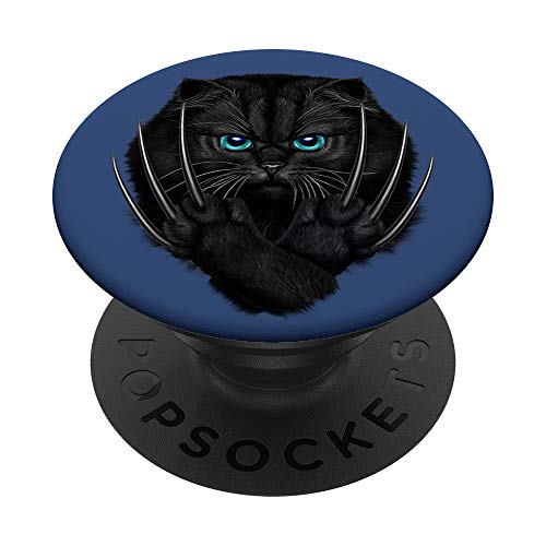Guerriero gatto nero con un lungo artiglio PopSockets PopGrip: Impugnatura per Telefoni Cellulari e Tablet Intercambiabile