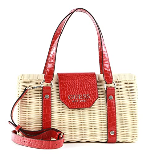 Guess Borsa a Mano Modello Paloma in Paglia e Ecopelle Stampa Cocco Colore Rosso Donna 28x16,5x12 cm