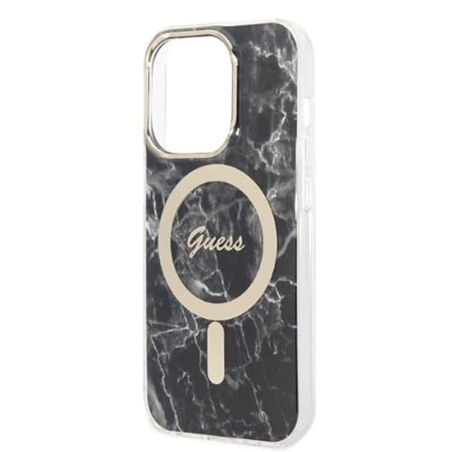 GUESS Bundle GUBPP14LHMEACSK - Custodia e caricatore per iPhone 14 Pro 6,1", colore: Nero