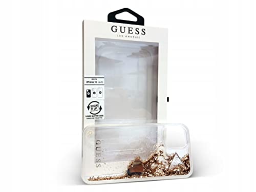 Guess - Custodia rigida per iPhone 12 in policarbonato, con glitter liquido, mot
