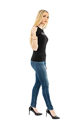 GUESS Maglia Donna Manica Corta Estiva t-Shirt in Cotone Nero con Stampa Collo V XXL