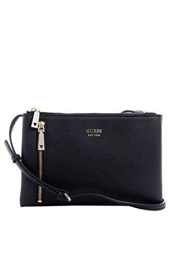 Guess Naya Double Zip Crossbody, Borsa Donna, Nero, Taglia unica
