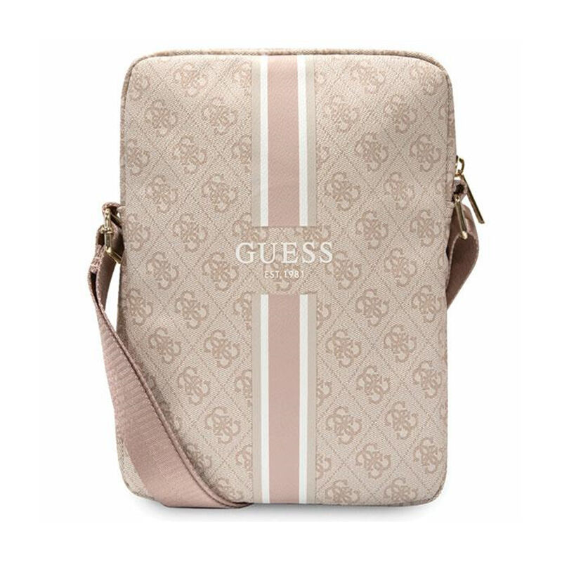 Guess 4G Stripes Tasche für Notebooks und Tablets mit einer Diagonale von bis zu 10 Zoll. Das Produkt zeichnet sich durch eines der bekanntesten Motive von Guess aus, die 4G-Embleme, die auf einer angenehm anzufassenden Saffiano-Textur platziert sind Das Guess-Logo ist auf einem markanten Streifen platziert, dessen Farben perfekt zum Stil einer Handtasche passen. Die Kombination dieser Elemente verleiht dem Ganzen ein sehr elegantes Aussehen. Doppelseitige Reißverschlüsse und ein abnehmbarer, verstellbarer Schultergurt sorgen für Tragekomfort: · Tasche für Tablets und Notebooks mit einer Diagonale von 10 Zoll · Angenehme Saffiano-Textur verziert mit 4G-Logo · Guess-Logo · Schutz des gesamten Geräts · Abnehmbarer, verstellbarer Schultergurt und doppelseitige Reißverschlüsse · Abmessungen: 270 x 200 x 50 mm