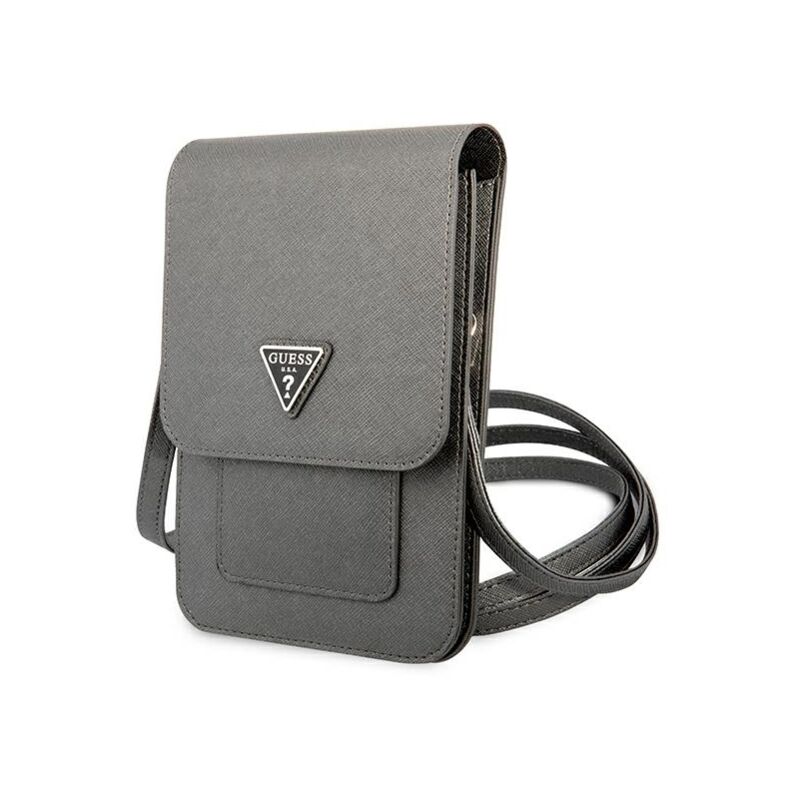 Guess Wallet Saffiano Triangle Logo Phone Bag ist eine Umhängetasche für alle notwendigen Alltagsaccessoires. Ausgestattet mit zwei größeren Fächern und vier zusätzlichen kleineren Taschen für Kreditkarten und Dokumente, Bargeld und andere kleine Accessoires Organisieren Sie bequem den verfügbaren Platz. Mit einem Magnetverschluss verschlossen. Der abnehmbare, verstellbare Schultergurt sorgt für Tragekomfort. Großes, dreieckiges, silbernes Guess-Logo. Die Kombination dieser Elemente lässt das Ganze sehr elegant aussehen. Produktmerkmale: · Smartphone-Tasche (2 x Fächer, 4 x Kartenfächer) · Angenehme Saffiano-Textur verziert mit dem 4G-Logo · Großes, dreieckiges, silbernes Guess-Logo · Schutz des Ganzen Gerät · Abnehmbarer, verstellbarer Schultergurt. Silberne Befestigungselemente. Farbe: Grau. Innenmaße: 17 x 10 x 20 cm