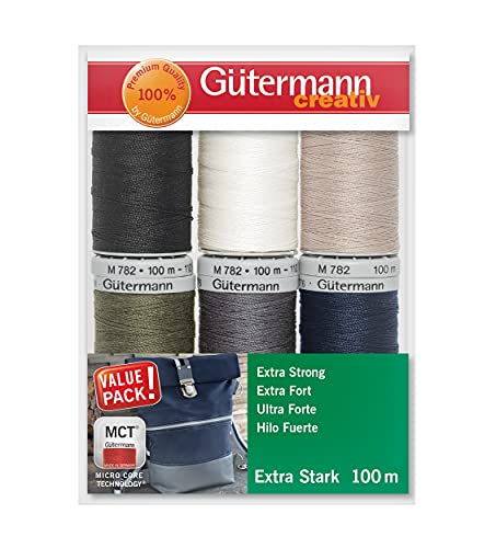 Guetermann creativ Set filo da cucito con 6 bobine Ultra Forte 100 m nei colori base