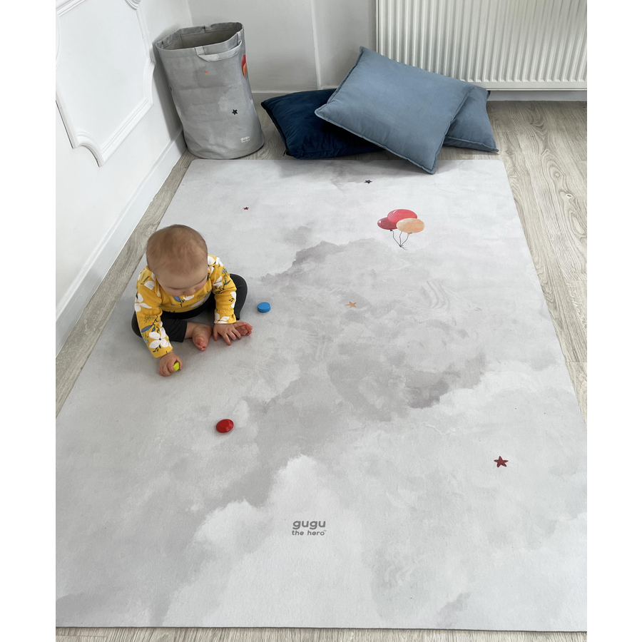 Dettagli del prodotto: Tappeto da gioco in gomma naturale Il tappetino ergonomico garantisce un buon sviluppo Buona presa sul pavimento I tappetini PRIME di Gugu the Hero offrono un maggiore assorbimento degli urti grazie allo strato di gomma più spesso del 33%. Le microfibre corte prevengono lo sviluppo degli acari Design: Baloon Dream Dimensioni e peso: Dimensioni (lunghezza x larghezza x altezza): 118 cm x 180 cm x 5 mm. Peso: 5 kg Materiale e cura: Materiale: gomma naturale biodegradabile. Materiale strato superiore: microfibra Privo di sostanze chimiche nocive, PVC, BPA e ftalati L'odore della gomma è quello della gomma naturale, che si attenua con il tempo. Istruzioni per la cura: pulire le macchie con un panno umido e sapone neutro o lavare a mano senza detersivo. Incluso nella consegna: Tappetino in gomma naturale