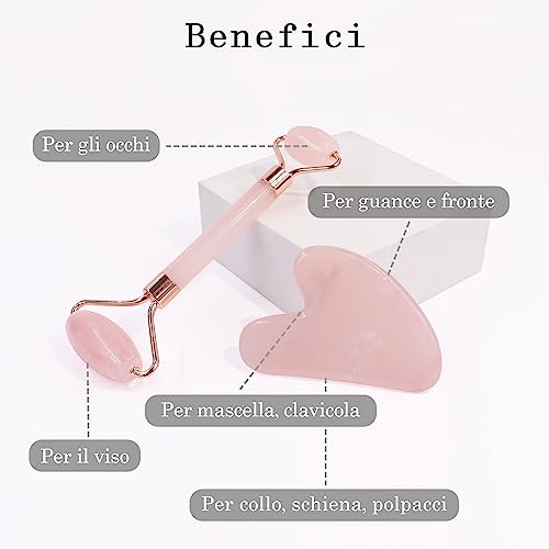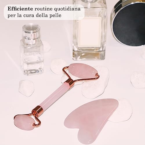 Portatile e facile da usare: Il set jade roller e gua sha è leggero e progettato per essere facilmente trasportabile durante viaggi o viaggi d'affari. È uno strumento di massaggio viso portatile che ti aiuta a completare rapidamente la tua routine di skincare viso e gua sha per il corpo. Con un uso costante, la tua pelle apparirà più luminosa.