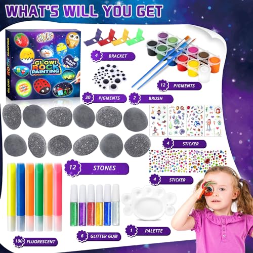 GUHAOOL 50PCS Kit Pittura di Pietra per Bambini con 24 Colori (Colle Glitter e Fluorescente e Colori Standard), Kit di Pittura su Roccia, Bricolage Giocattoli di Pittura, Regalo di Compleanno