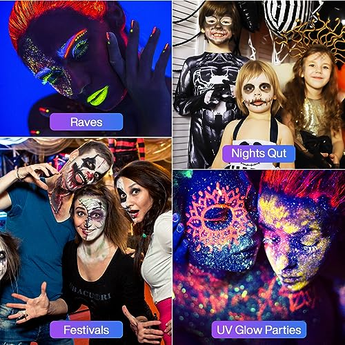 GUHAOOL Kit di Pittura per Il Viso, 12 Colori Fluorescenti Matite Trucco per Viso e Corpo, Set di Colori per il Corpo UV, Sicuro e Non Tossico Lavabili per Feste di Cosplay, Halloween e Natale