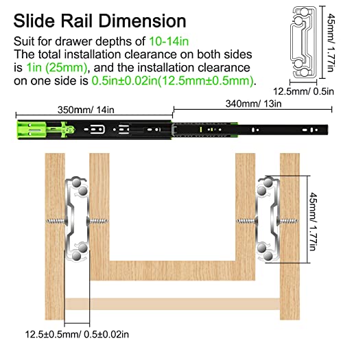 Guida per Cassetti 350mm Guide per Cassetti con Cuscinetti a Sfera a Chiusura Morbida Guide a Estrazione Totale Capacità di Carico 45kg 2 Pezzi
