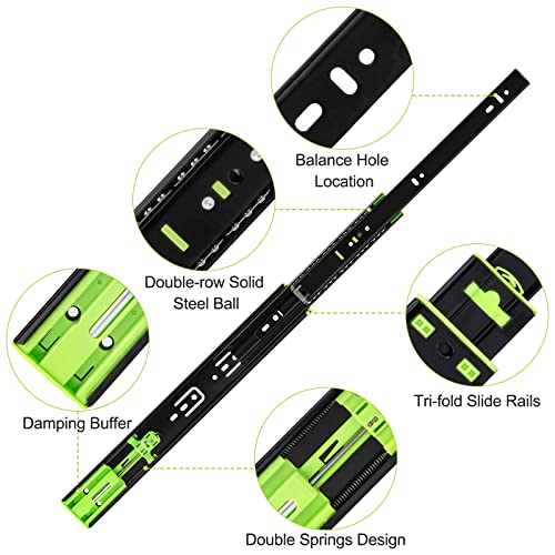 Estensione completa e rimovibile: Guide a 3 pieghe, il binario di scorrimento del cassetto è completamente esteso, in modo che il cassetto possa essere completamente estratto, il che è comodo per riporre gli oggetti. Sul retro della guida di scorrimento è presente una fibbia in plastica verde che consente di estrarre facilmente il cassetto premendola.