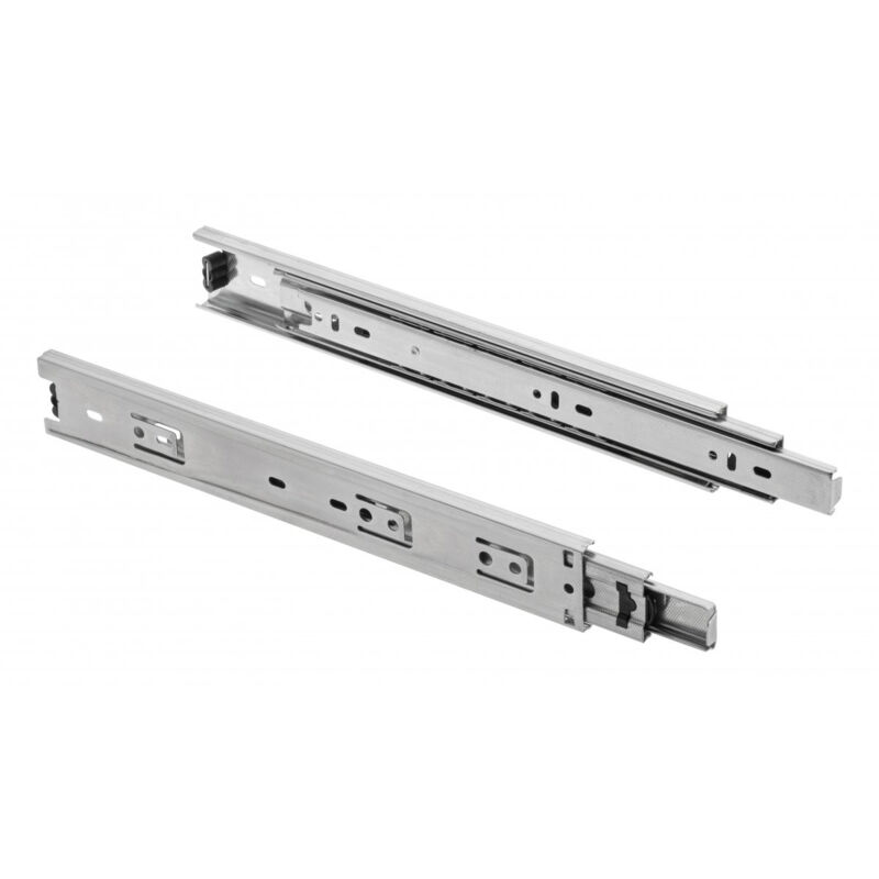 In acciaio zincato lucido. A estrazione totale. Scorrimento su sfere di acciaio. Fissaggio laterale. Portata 30 kg Lunghezza 30 cm L'offerta ed i prezzi si riferiscono a 15 pz. per confezione