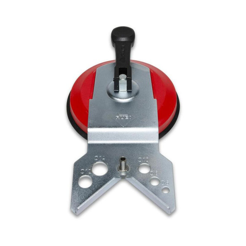 Guida per punte Rubi Multidrill per punte D83mm La guida MULTIDRILL garantisce un perfetto centraggio durante la realizzazione di fori da taglio a secco o a umido. La guida MULTIDRILL viene fissata direttamente alla superficie da forare, in verticale o in orizzontale, mediante una ventosa. Grazie all'elevato livello di precisione e affidabilità, la guida MULTIDRILL garantisce una perforazione accurata e impedisce alla punta di perforazione di muoversi. La guida MULTIDRILL è compatibile con punte DRYGRES, EASYGRES, FORAGRES e MINIGRES fino a Ø 83 mm. Connessione con tubo e serbatoio inclusi (rif. 50947). Vantaggi: Fissaggio tramite ventosa. Consente di eseguire lavori orizzontali e verticali nel punto esatto, evitando di spostare la punta. Include fori di centraggio per punte da 6 a 12 mm. Guida principale compatibile con punte fino a Ø 83 mm. Compatibile con le punte MULTRIDRILL n. 50947 a taglio secco o a taglio umido. Adatto a tutti i tipi di materiali ceramici e/o pietra naturale