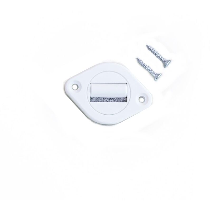 Guidacinghia in nylon bianco,orientabile per ogni applicazione (rotazione 360°) con spazzolino antipolvere, silenzioso, design pulito ed essenziale, adatto ad ogni ambiente.