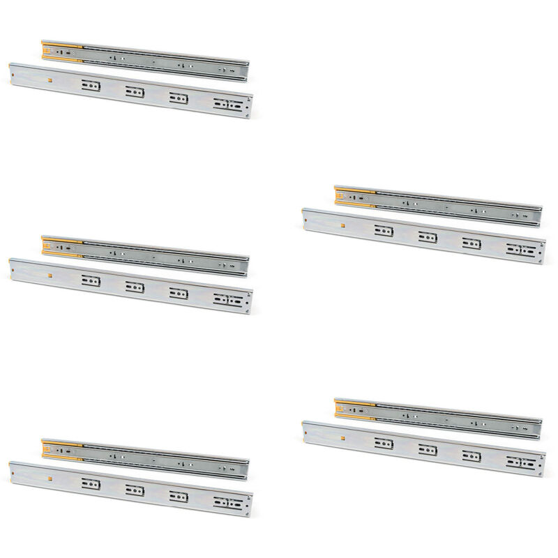 Guide a estrazione totale per cassetti a chiusura morbida con palline di alta qualità per uno scorrimento fluido e silenzioso. Sono anche dotati di un grande capacità di carico che può supportare fino a 45 kg per cassetto. Montaggio per mezzo di viti e smontaggio con il grilletto sul carrello stesso. Caratteristiche: Lunghezza = 500mm Colore: Zinco placcato Set di 5 coppie di vetrini