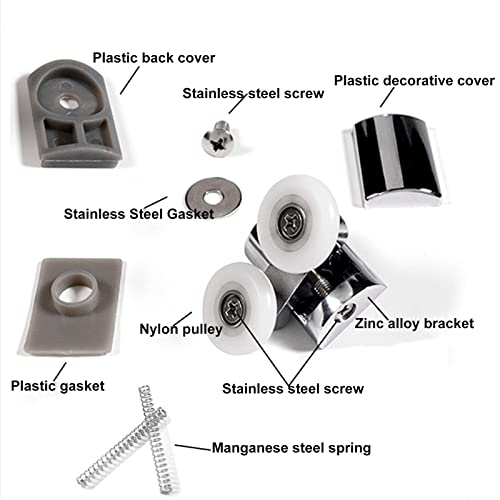 4 rotelle doppie in lega di zinco per porta della doccia (2 doppie superiori + 2 doppie inferiori)