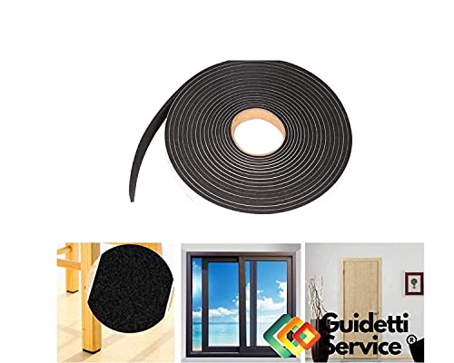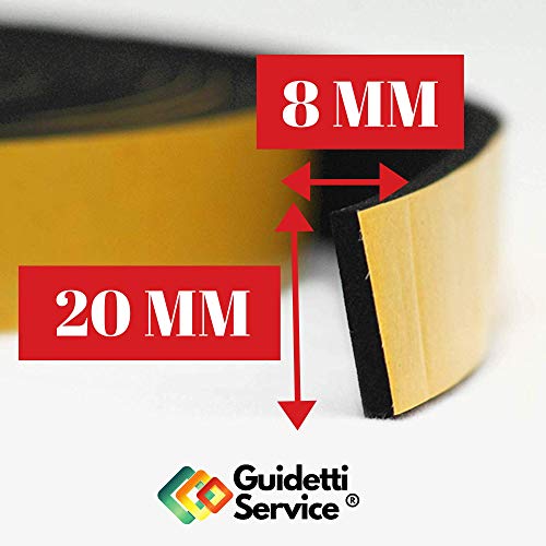 Guidetti Service ® - 8 x 20 MM ROTOLO DA 10 MT | Guarnizione adesiva nera | Neoprene in rotoli|Nastro adesivo in gomma espansa|Guarnizione adesiva per porte e finestre|Striscia neoprene adesiva