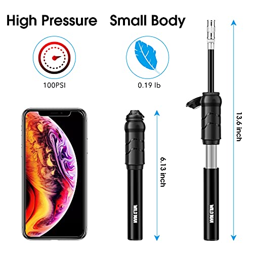 Guijiyi Pompa Bicicletta, Mini Portatile Pompa Aria per Bicicletta 100 PSI, Compatibile Valvole Presta e Schrader, Pompetta Bici per Bici MTB, Bici Corsa, Palla Sportiva